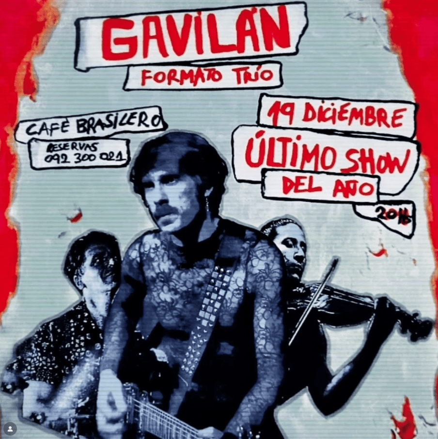 Gavilán Último Show del Año en @cafebrasilero.uyCon @tato_millot batería y @lugayo.art violín. Cena Show Invitada @ver.luz + artistas sorpresa 19 Diciembre 9 PM - Reservas al 092 300 021 Fotografías: @frankmoreiravAfiche: @elgavilanok